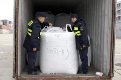 近日,上海海關(guān)兩名現(xiàn)場(chǎng)作業(yè)人員打開(kāi)一個(gè)封存的集裝箱,一股刺鼻的嗆人氣味撲面涌出,箱子里塞滿(mǎn)了編織袋包裝物...