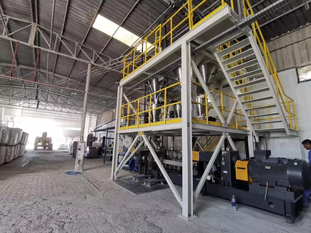 ????????近日,南京科亞技術(shù)和工程人員,經(jīng)過在迪拜鏖戰(zhàn)近一周,順利交付SK63高填充擠出造粒生產(chǎn)線,該生產(chǎn)線自動化程度高,從上料、計量、喂料、到擠出造粒、冷卻、輸送、包裝一氣呵成,大大降低了用戶人力成本,且在單機產(chǎn)能、能耗降低方面贏得了用戶的高度贊賞。