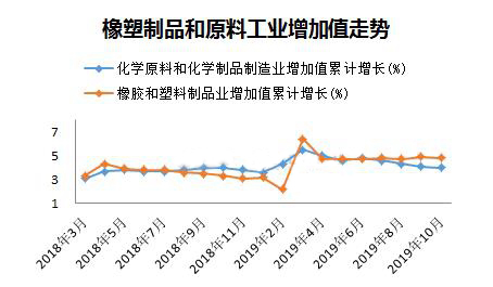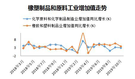 ????????10月份,化學(xué)原料和化學(xué)品制造業(yè)增加值同比增長3%,橡膠和塑料制品業(yè)增加值同比增長3.9%,顯然下游制品業(yè)增速還是快于上游原料,兩者增速差連續(xù)三個月收窄,源于10月份制品業(yè)下降速度快于原料。去年10月份PE、PP等塑料原料價格揭開下滑序幕,橡塑制品的增速明顯低于原料,總體看隨著原料端價格下跌,終端產(chǎn)品成本降低,從塑料制品增長角度看制品行業(yè)目前形勢略好于去年。