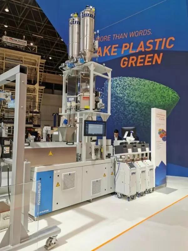 ????????在今年的K2019展會(huì)上,克勞斯瑪菲用一臺(tái)ZE28 BluePower 雙螺桿擠出機(jī)將一個(gè)塑料桶回收升級(jí)為高質(zhì)量的共混物,并立刻用其制造出A柱裝飾件。
