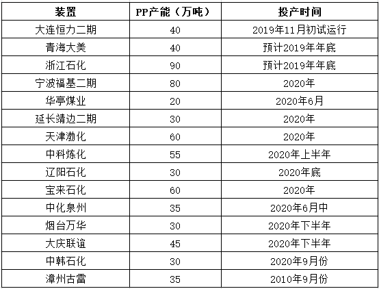 ????????據了解,目前大連恒力二期聚丙烯裝置預計下個月試運行,青海大美、浙江石化等裝置年底前或將投產。明年投產熱情依舊,寧波福基二期、華庭煤業(yè)、天津渤化、中科煉化等十幾套裝置產能集中釋放,可以說未來供應壓力山大。
