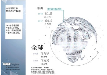 ????????根據(jù)全球領(lǐng)先的泛歐洲協(xié)會(huì)——?dú)W洲塑料協(xié)會(huì)(PlasticsEurope)發(fā)布的《塑料——2019年事實(shí)與數(shù)據(jù)》報(bào)告統(tǒng)計(jì),2018年全球塑料產(chǎn)量達(dá)3.6億噸;其中,歐洲的塑料產(chǎn)量為6180萬(wàn)噸,與2017年的6440萬(wàn)噸相比有所下降。
