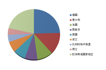 ????????歐洲本土的塑料加工商對(duì)塑料需求量為5120萬(wàn)噸,按地域分布劃分,德國(guó)塑料加工商的需求量最大,為24.6%,其次分別為意大利(13.9%),法國(guó)(9.4%),西班牙(7.6%),英國(guó)(7.3%),波蘭(6.8%),比利時(shí)和盧森堡(4.6%),荷蘭(4.3%),其他歐洲國(guó)家地區(qū)共占21.5%。