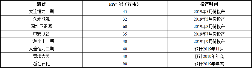 ????????2019年國內PP裝置新增產能匯總