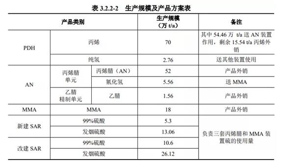 ????????據(jù)介紹,該項(xiàng)目主要建設(shè)內(nèi)容為:擴(kuò)建項(xiàng)目新建70萬(wàn)t/a丙烷脫氫裝置、兩套26萬(wàn)t/a丙烯腈裝置、兩套9萬(wàn)t/a MMA裝置及一套21萬(wàn)t/a SAR裝置,同時(shí)改建現(xiàn)有項(xiàng)目中一套23萬(wàn)t/a SAR裝置,擴(kuò)建項(xiàng)目所有生產(chǎn)裝置均在斯?fàn)柊铑A(yù)留用地上。