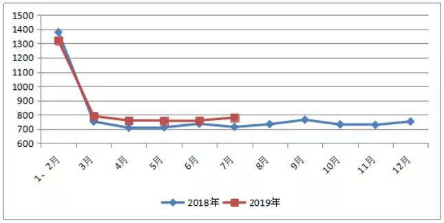????????按每月規(guī)模企業(yè)統(tǒng)計(jì):1-7月中國規(guī)模以上工業(yè)企業(yè)初級形態(tài)塑料產(chǎn)量累計(jì)為5165.1萬噸,同比增長3.27%;其中,7月份產(chǎn)量為779.3萬噸,環(huán)比增長2.59%,同比增長9.15%。