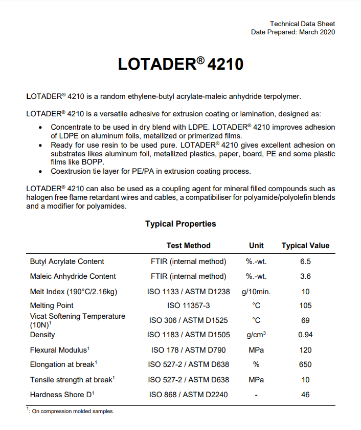 • 阿科瑪 EBA 4210 良好的附著力 層壓板 增粘劑 良好的粘合性 物性表, 阿科瑪 EBA 4210 良好的附著力 層壓板 增粘劑 良好的粘合性 產(chǎn)品參數(shù),阿科瑪 EBA 4210 良好的附著力 層壓板 增粘劑 良好的粘合性 性能表,阿科瑪 EBA 4210 良好的附著力 層壓板 增粘劑 良好的粘合性 出廠報(bào)告, MSDS,, 物質(zhì)安全資料表, UL黃卡,{ SGS報(bào)告, RoHS, 食品級(jí)認(rèn)證, NSF飲用水標(biāo)準(zhǔn), 產(chǎn)品資料, 產(chǎn)品性能, 出廠報(bào)告, 原廠原包, 代理商, 熱變形溫度, 熔指數(shù), 流動(dòng)系數(shù), 抗沖擊性能、沖擊強(qiáng)度, 低溫韌性、低溫抗沖擊性能, 熔體流動(dòng)系數(shù)、熔體流動(dòng)速率, 加工工藝、加工參數(shù)、加工溫度, 歐盟RoHS 德國FDA 美國FDA 日本FDA