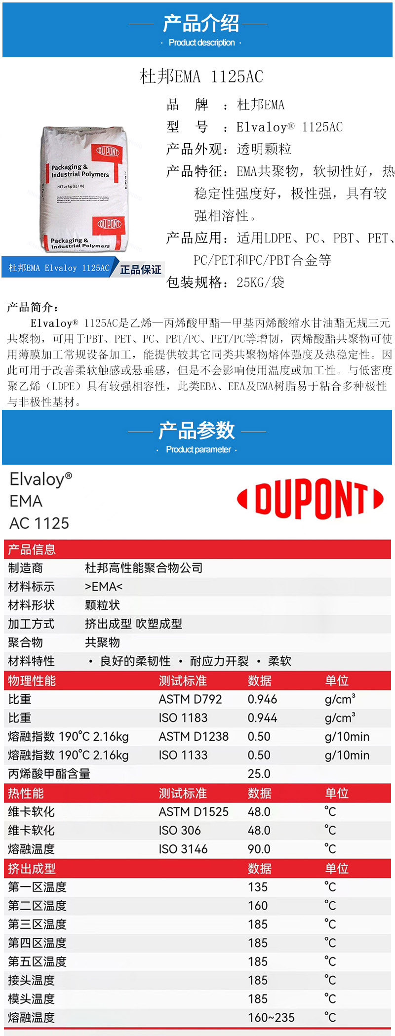 • EMA 杜邦 1125 相溶劑 PC/PET PBT增韌劑 LDPE薄膜 Elvaloy 物性表, EMA 杜邦 1125 相溶劑 PC/PET PBT增韌劑 LDPE薄膜 Elvaloy 產(chǎn)品參數(shù),EMA 杜邦 1125 相溶劑 PC/PET PBT增韌劑 LDPE薄膜 Elvaloy 性能表,EMA 杜邦 1125 相溶劑 PC/PET PBT增韌劑 LDPE薄膜 Elvaloy 出廠報告, MSDS,, 物質(zhì)安全資料表, UL黃卡,{ SGS報告, RoHS, 食品級認(rèn)證, NSF飲用水標(biāo)準(zhǔn), 產(chǎn)品資料, 產(chǎn)品性能, 出廠報告, 原廠原包, 代理商, 熱變形溫度, 熔指數(shù), 流動系數(shù), 抗沖擊性能、沖擊強(qiáng)度, 低溫韌性、低溫抗沖擊性能, 熔體流動系數(shù)、熔體流動速率, 加工工藝、加工參數(shù)、加工溫度, 歐盟RoHS 德國FDA 美國FDA 日本FDA