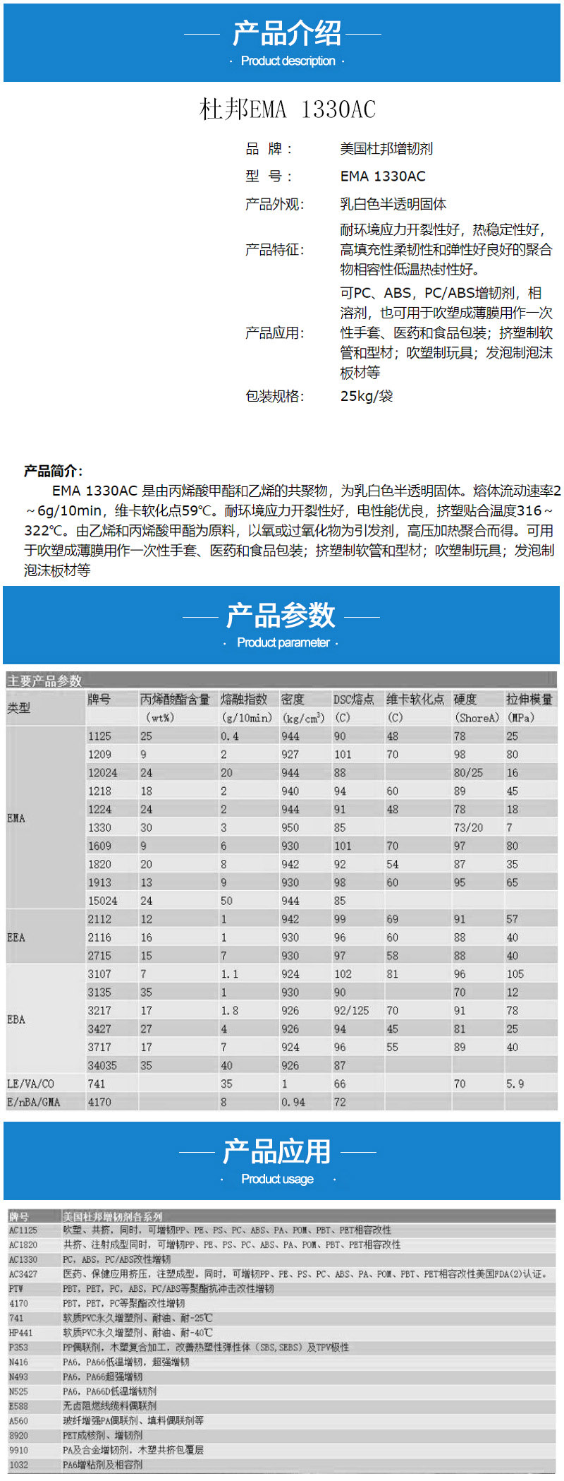 EMA 杜邦 1330AC 相溶劑 增韌劑 注塑級 乙烯丙烯酸甲酯 美國