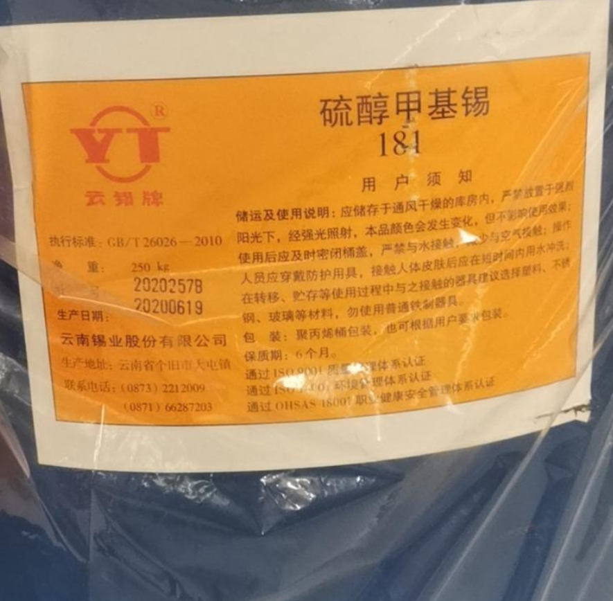 云錫牌硫醇甲基錫熱穩(wěn)定劑“YT-181透明性好 色澤純凈