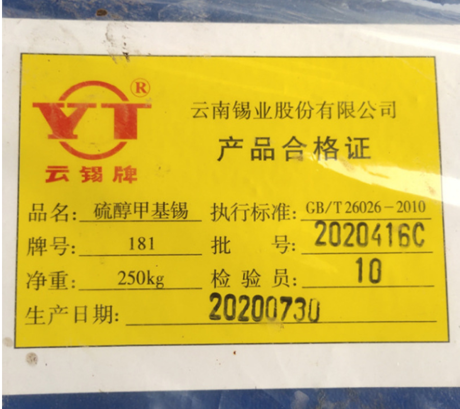 • 云錫牌硫醇甲基錫熱穩(wěn)定劑“YT-181透明性好 色澤純凈 物性表, 云錫牌硫醇甲基錫熱穩(wěn)定劑“YT-181透明性好 色澤純凈 產(chǎn)品參數(shù),云錫牌硫醇甲基錫熱穩(wěn)定劑“YT-181透明性好 色澤純凈 性能表,云錫牌硫醇甲基錫熱穩(wěn)定劑“YT-181透明性好 色澤純凈 出廠報(bào)告, MSDS,, 物質(zhì)安全資料表, UL黃卡,{ SGS報(bào)告, RoHS, 食品級(jí)認(rèn)證, NSF飲用水標(biāo)準(zhǔn), 產(chǎn)品資料, 產(chǎn)品性能, 出廠報(bào)告, 原廠原包, 代理商, 熱變形溫度, 熔指數(shù), 流動(dòng)系數(shù), 抗沖擊性能、沖擊強(qiáng)度, 低溫韌性、低溫抗沖擊性能, 熔體流動(dòng)系數(shù)、熔體流動(dòng)速率, 加工工藝、加工參數(shù)、加工溫度, 歐盟RoHS 德國(guó)FDA 美國(guó)FDA 日本FDA