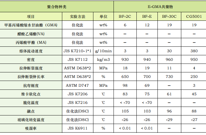 1、乙烯和縮水甲基丙烯酸甘油脂的共聚物(GMA,含環(huán)氧基)