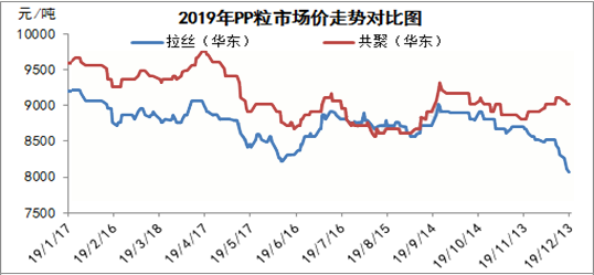 ????????目前國內(nèi)石化庫存一直在降庫為主,多連續(xù)下調(diào)出廠降價銷售。而下游工廠采購多維持剛需,市場供需矛盾的突出,使得不少貿(mào)易商轉(zhuǎn)向觀望。2019年逐漸步入尾聲,又有兩家廠家近期不斷傳出試車的好消息:浙江石化PP裝置12月8日造粒裝置試車成功,原料為外采丙烯,該PP裝置產(chǎn)能90萬噸/年(兩條線各45萬噸/年);其次是大連恒力二期試運行計劃推遲在12月底試車STPP裝置,春節(jié)前后試運行JPP裝置和乙烯裂解裝置。二期40萬噸/年(STPP和JPP線各20萬噸)。終端剛性需求縮水,高端貨源跟進謹(jǐn)慎,行情下行明顯。