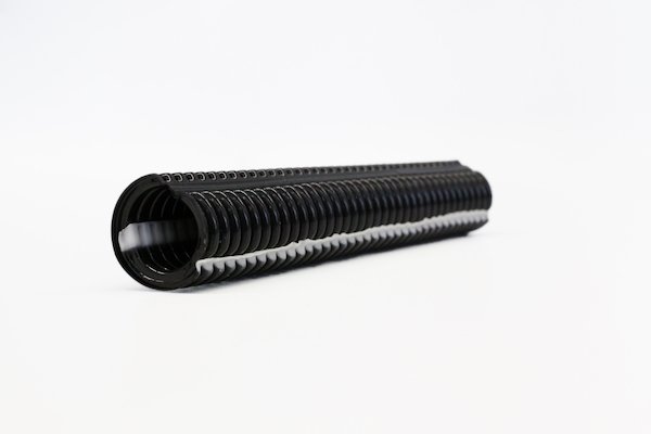 ????????柔性電纜管理系統(tǒng)的新型Polyflex波紋管,特別是用于車輛制造中,標志著Schlemmer Group對TPE組件的要求已經(jīng)提高。為了避免產(chǎn)生尖銳的邊緣,并使狹縫波紋管安裝速度加快,產(chǎn)品開發(fā)人員的設(shè)計旨在通過共擠出將PA和TPE結(jié)合在一起。