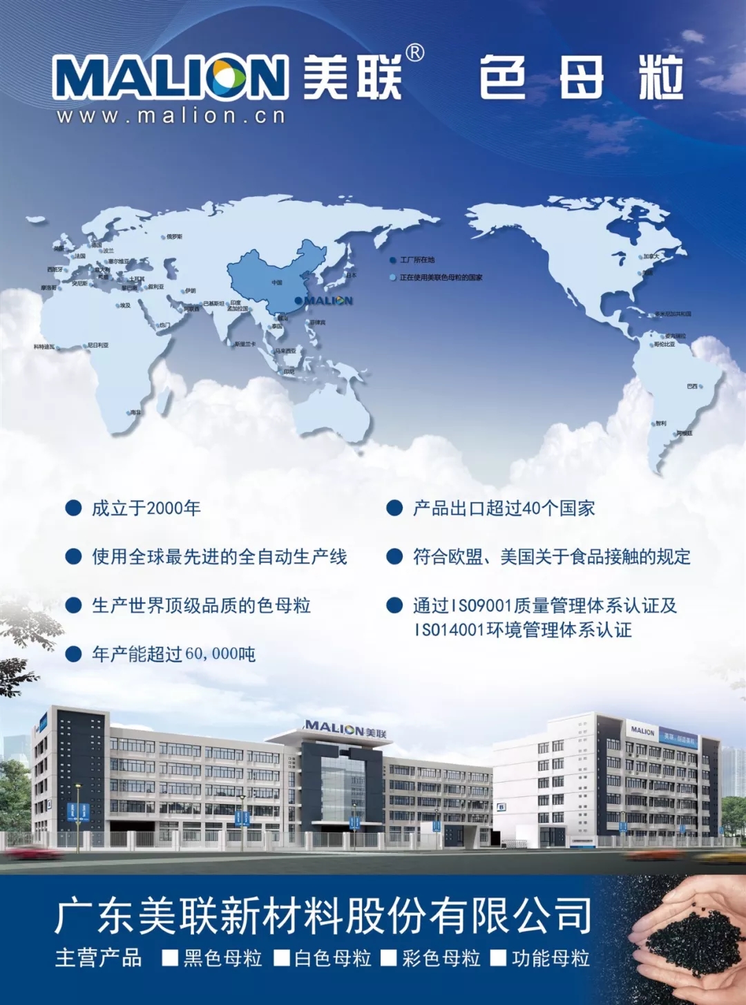??????????? ?本次展會(huì)美聯(lián)新材將帶來多種不同類型的產(chǎn)品,包括白色母粒,黑色母粒,彩色母粒以及功能母粒都將在現(xiàn)場(chǎng)展出,為客戶提供高品質(zhì)高標(biāo)準(zhǔn)的產(chǎn)品與服務(wù)!歡迎各位蒞臨參觀指導(dǎo)!