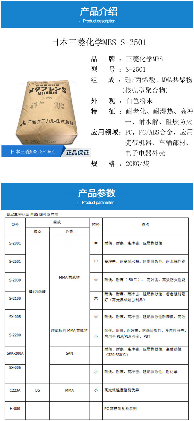 三菱麗陽(yáng)增韌劑S2501 耐高溫耐水解 阻燃效應(yīng) 高沖擊 日本S-2501