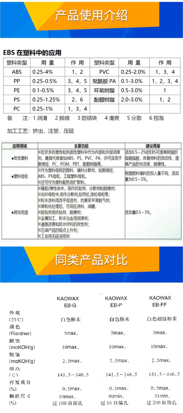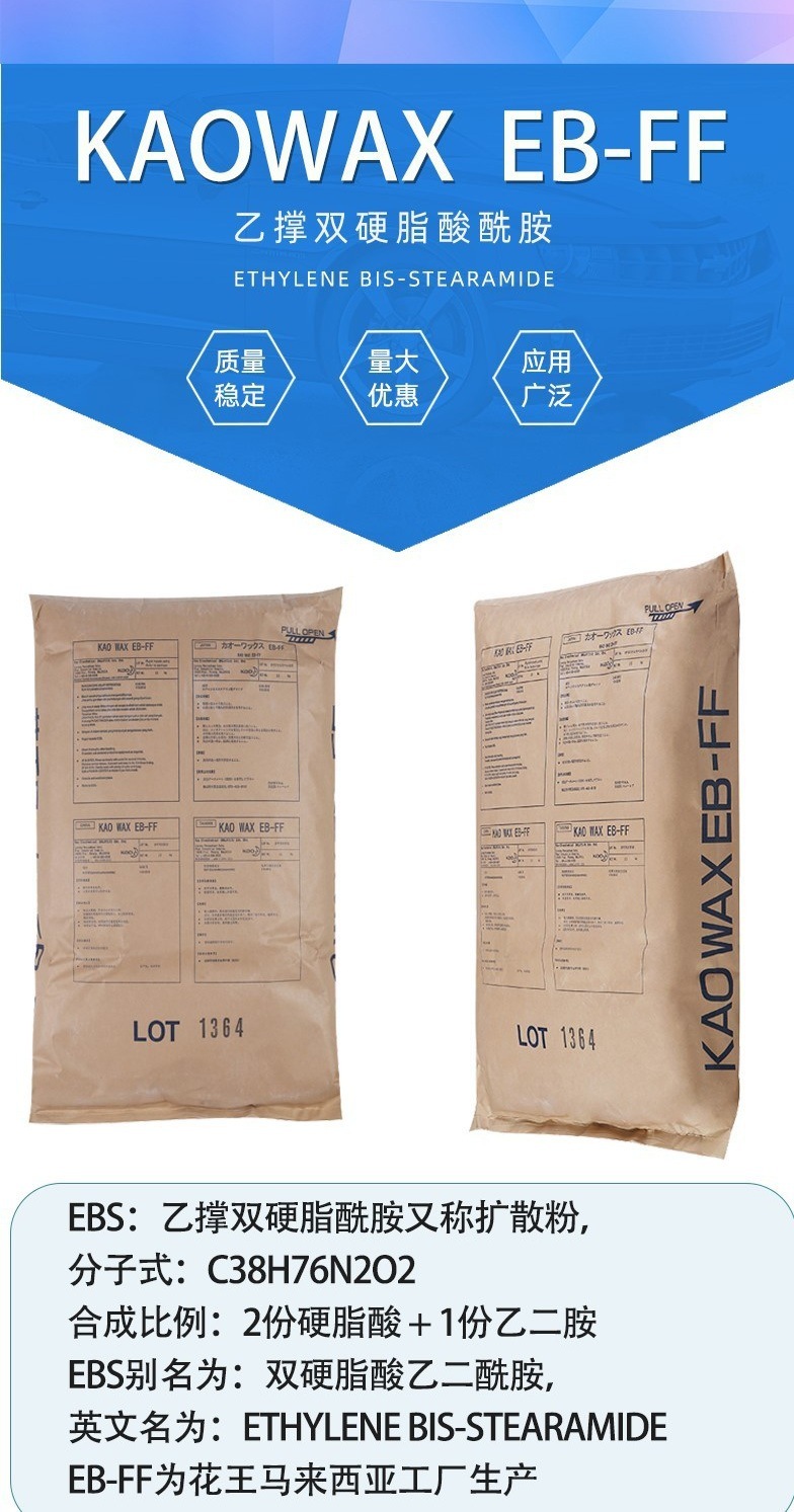 - EBS花王EB-FF顏料擴(kuò)散粉增塑劑塑料分散劑花王EBS EBFF潤滑脫模劑 物性表, EBS花王EB-FF顏料擴(kuò)散粉增塑劑塑料分散劑花王EBS EBFF潤滑脫模劑 產(chǎn)品參數(shù),EBS花王EB-FF顏料擴(kuò)散粉增塑劑塑料分散劑花王EBS EBFF潤滑脫模劑 性能表,EBS花王EB-FF顏料擴(kuò)散粉增塑劑塑料分散劑花王EBS EBFF潤滑脫模劑 出廠報(bào)告, MSDS,, 物質(zhì)安全資料表, UL黃卡,{ SGS報(bào)告, RoHS, 食品級認(rèn)證, NSF飲用水標(biāo)準(zhǔn), 產(chǎn)品資料, 產(chǎn)品性能, 出廠報(bào)告, 原廠原包, 代理商, 熱變形溫度, 熔指數(shù), 流動系數(shù), 抗沖擊性能、沖擊強(qiáng)度, 低溫韌性、低溫抗沖擊性能, 熔體流動系數(shù)、熔體流動速率, 加工工藝、加工參數(shù)、加工溫度, 歐盟RoHS 德國FDA 美國FDA 日本FDA