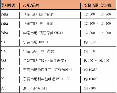 4.近期PMMA ABS PC市場(chǎng)價(jià)格對(duì)比: